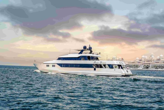 Ocean Dream, a majestic 141-foot mega yacht, is among Dubai’s finest vessels. With seven luxurious bedrooms and a sun deck with a jacuzzi, it offers unparalleled luxury. Step aboard and experience elegance in its spacious salon area and lounges. Designed as a sanctuary of comfort and sophistication, it’s perfect for special occasions. Whether for weddings or birthdays, Ocean Dream provides grandeur amidst breathtaking sea views. Our skilled captain and crew ensure an unforgettable voyage with their dedication and expertise. Embark on a journey of luxury aboard Ocean Dream and create lifelong memories in Dubai’s azure waters.