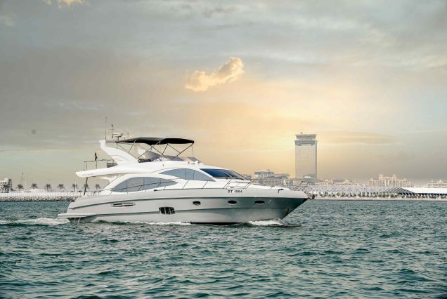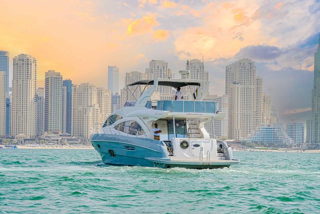 Witnessing the sunset on the beach is breathtaking, but the sea offers more. Board the extraordinary 59ft Majesty yacht for an unforgettable experience. Its impeccable design provides comfortable vantage points to admire the sea. With a spacious flybridge and sun deck, enjoy panoramic views and gentle sea breezes. Internal amenities offer ample space for relaxation and entertainment. Whether a tranquil evening cruise or adventure-filled exploration, this yacht exceeds expectations. Book now for an extraordinary voyage in Dubai’s waters.